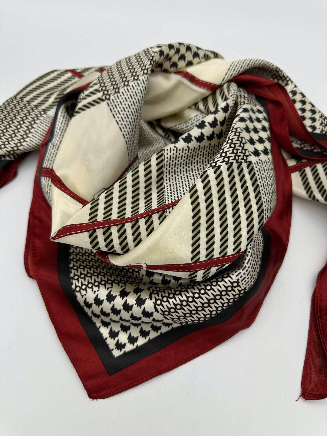 Burgundy & Ivory Plaid Silk Scarf