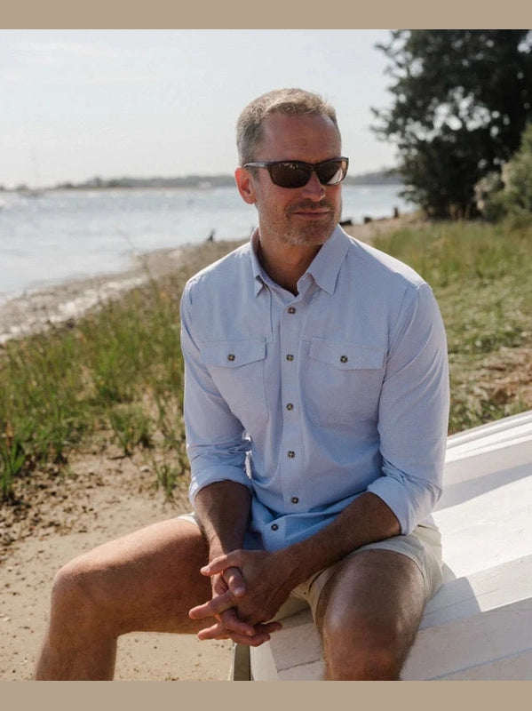 A refined evolution of the classic fishing shirt, built with vented performance panels and finished with elevated detailing — designed for long days outside and nights that call for something sharper.