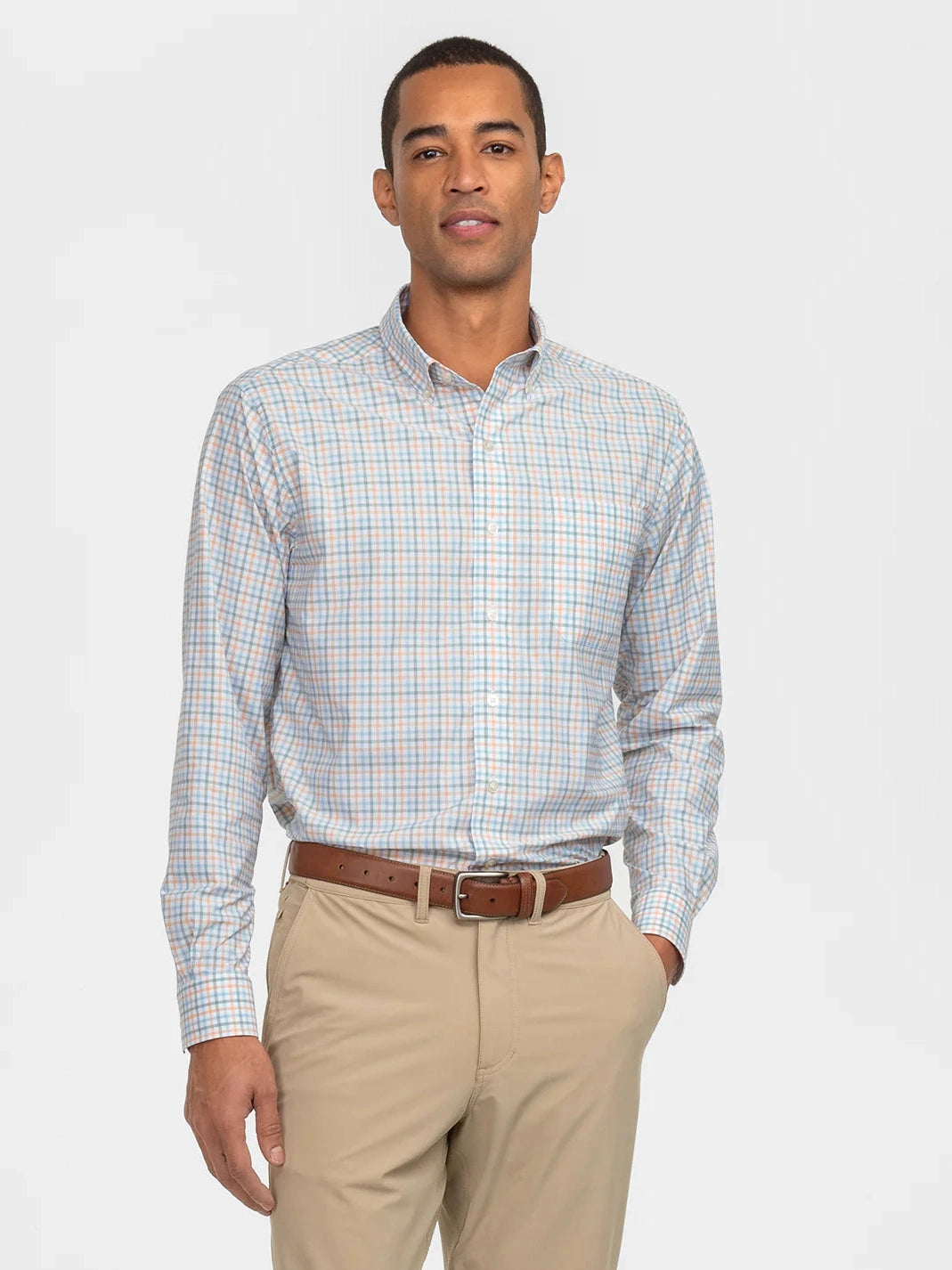 Look good at the oyster bar and feel good by the fire pit. Add in sun-shielding UPF protection, built-in collar stays, and a smooth finish, and you’ve got a staple that’s anything but standard. Self-collar styling with internal, no-show collar stays to prevent rolling, so they're always on point. Each color way is designed in-house and features sleeve embroidery with a clean front finish and straight hem. Breathable, lightweight, quick-drying, and moisture-wicking.