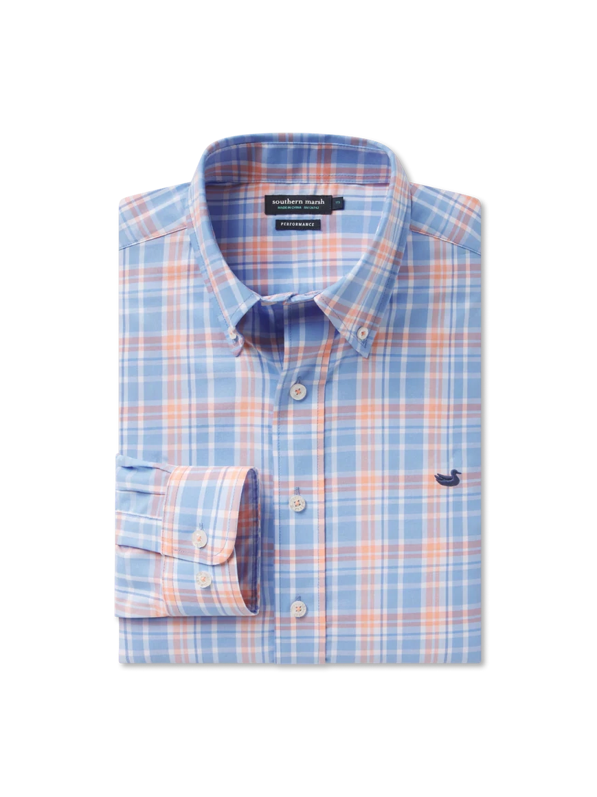 Southern Marsh Grainger Performance Plaid Dress Shirt - French Blue & Peach