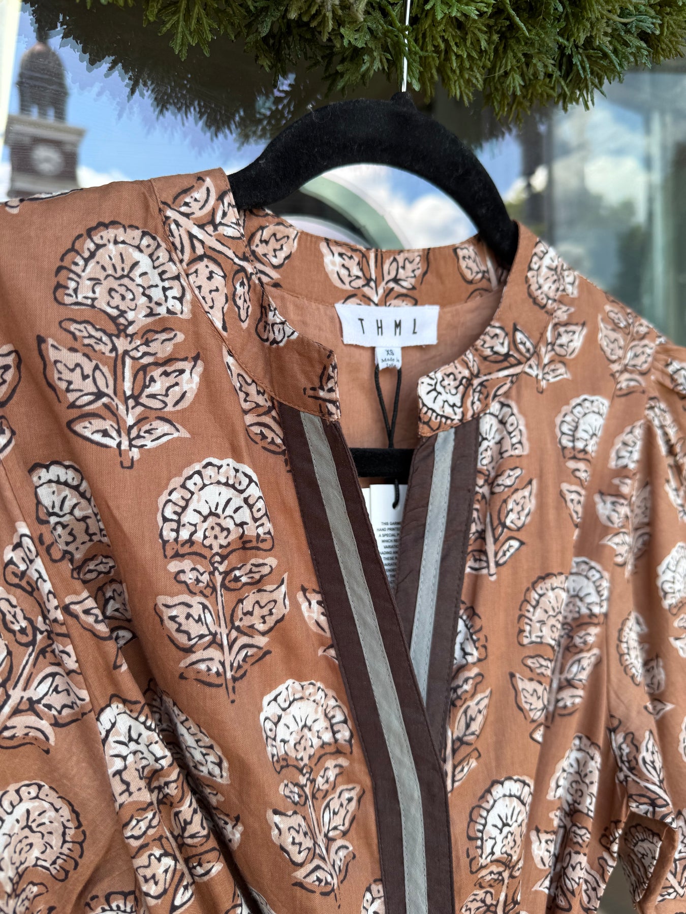 THML Puff Sleeve Floral Detailed V-Neck dress
