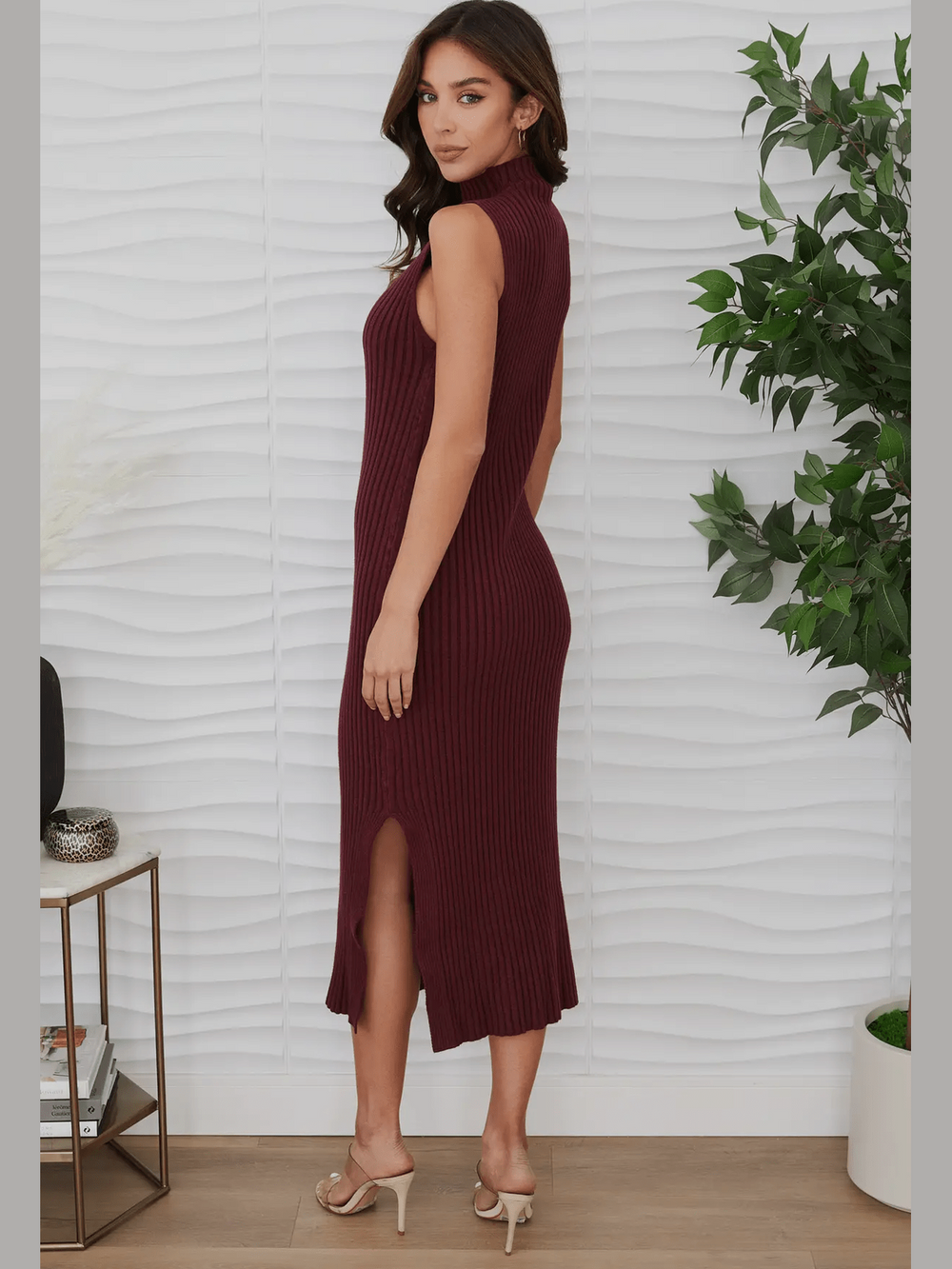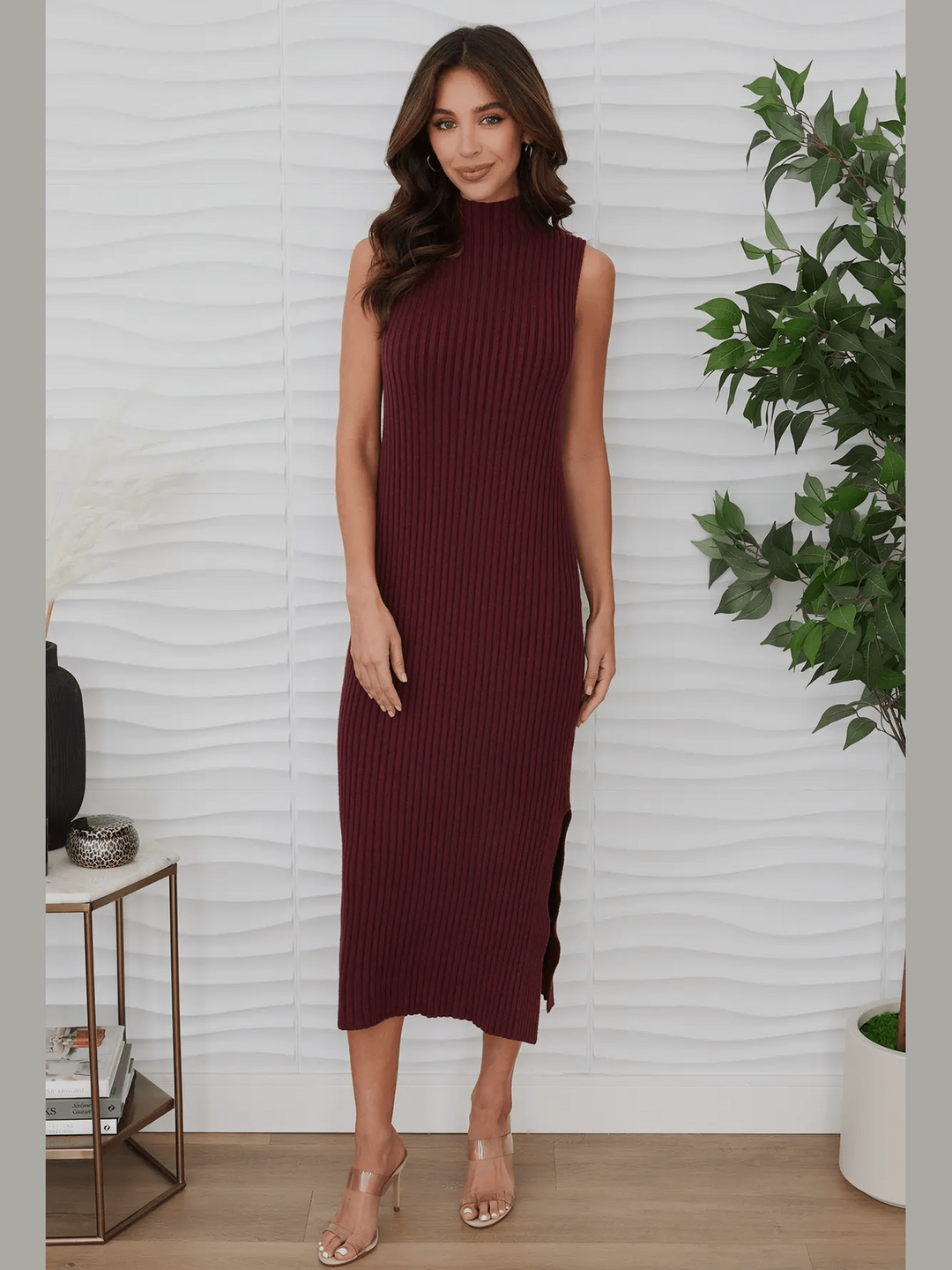 Rib Knit Midi Dress- Wine