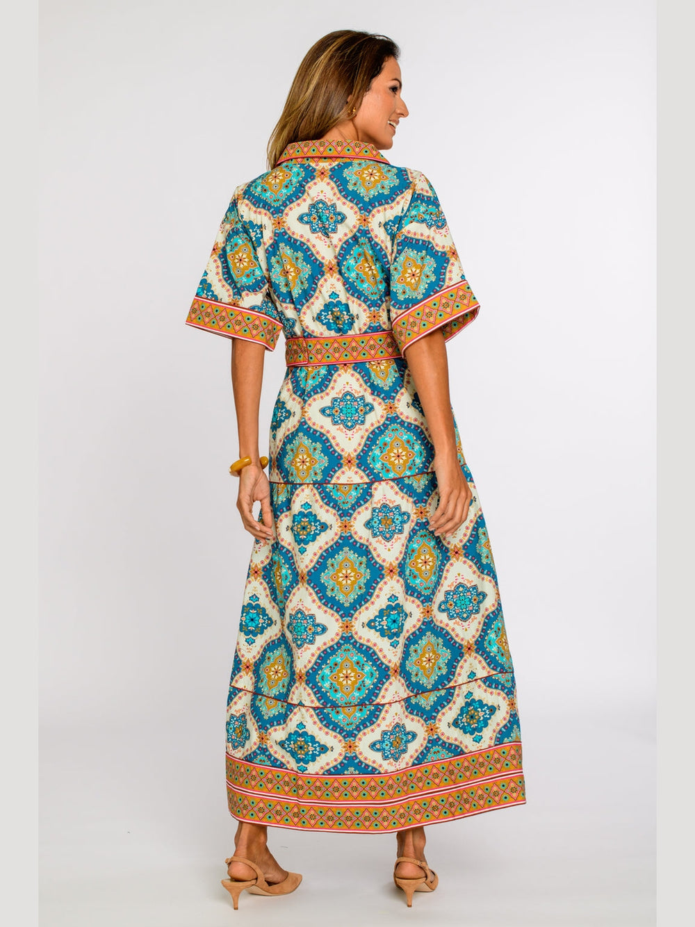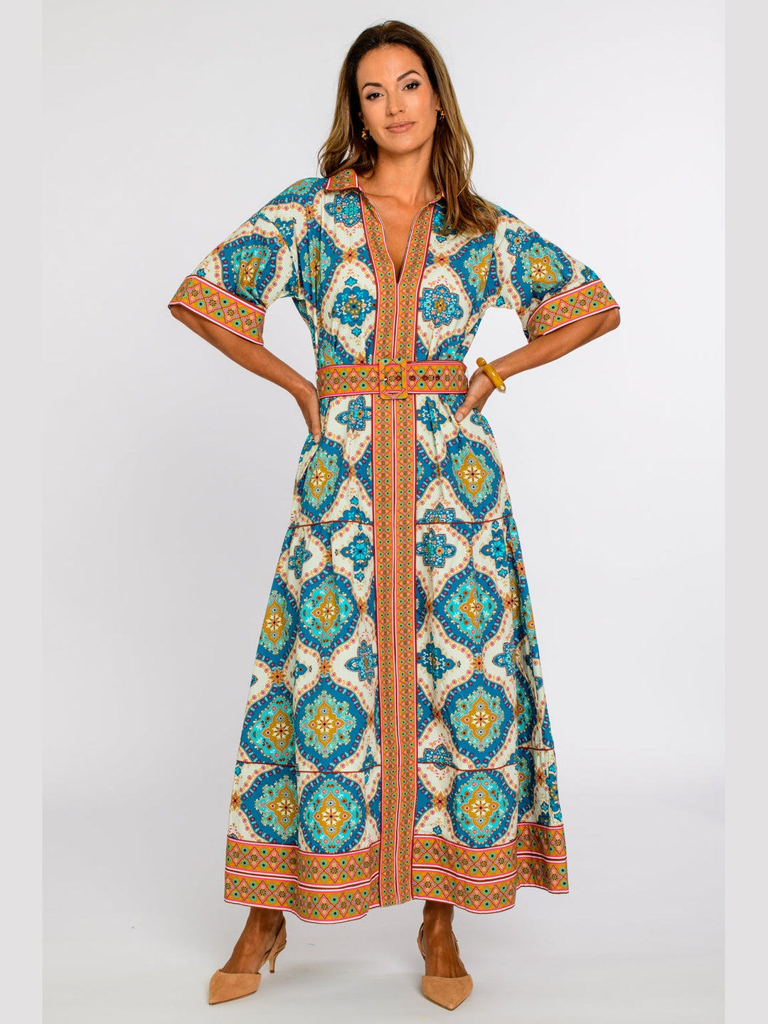 Jude Connally Tierney Dress- Twirling Peacock Cobalt
