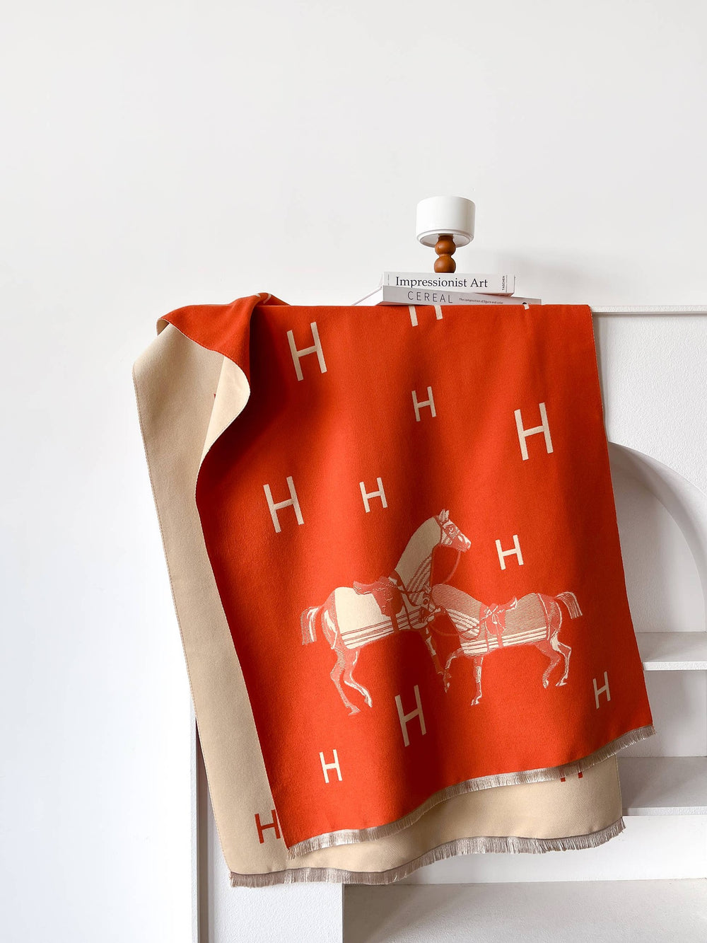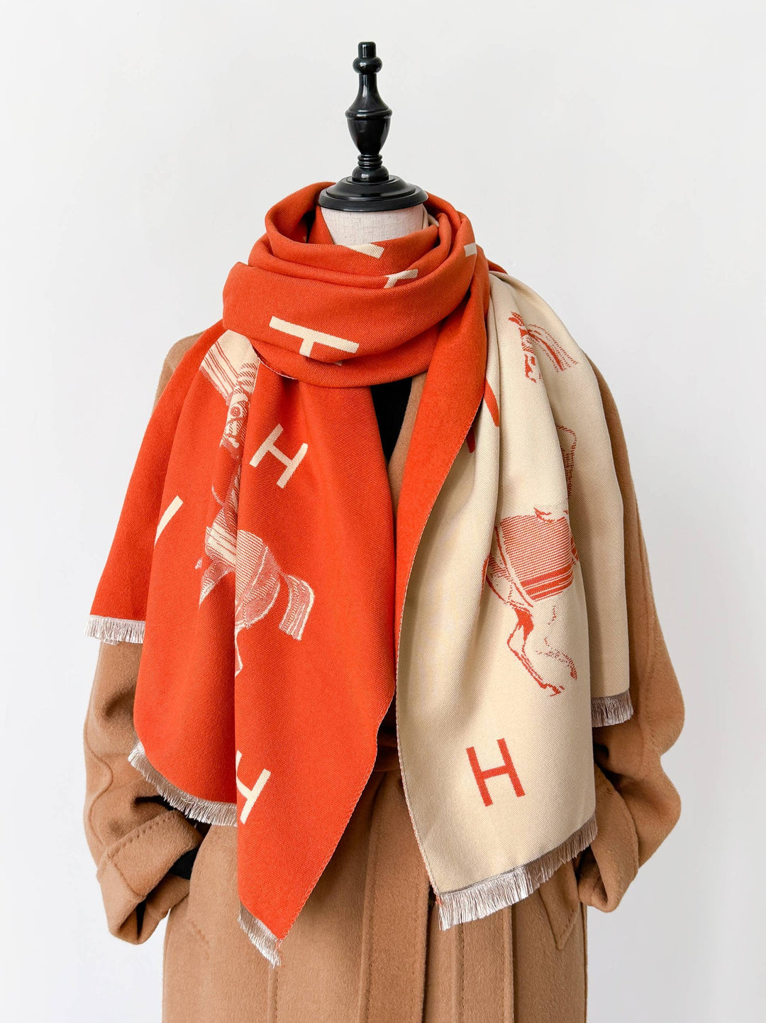 Equestrian Orange / Cream H Cashmere-Feel Wrap