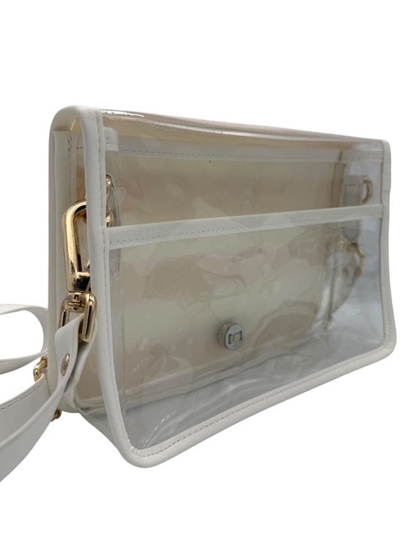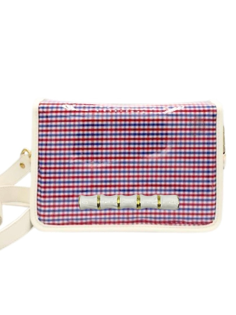 Garland Clear Stadium Bag- Red & Blue Gingham W/ White Bamboo Handle