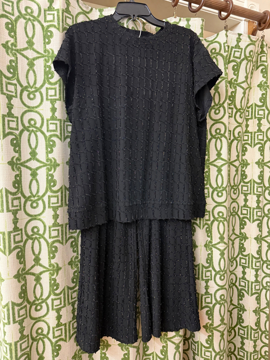 Glitter Textured Pants Set - Black