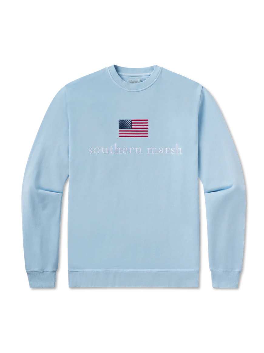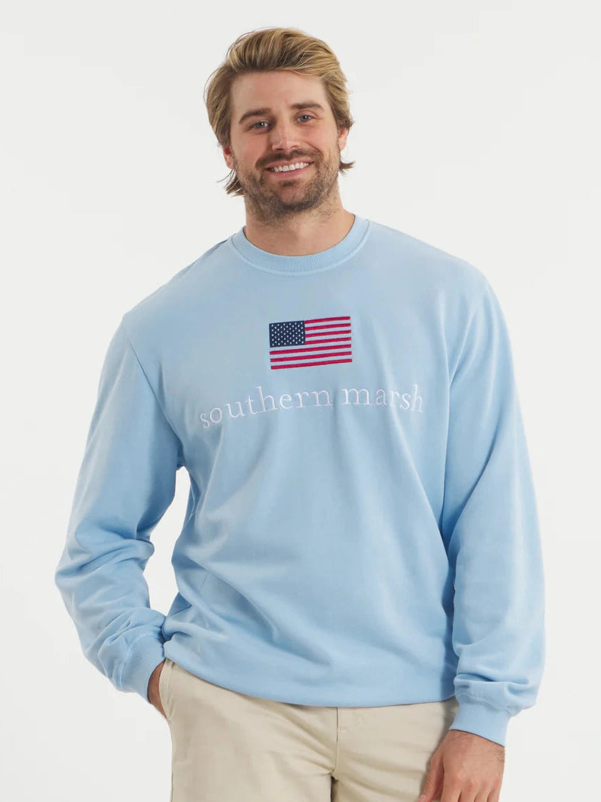 Southern Marsh SEAWASH Sweatshirt - American Flag - Washed Blue
