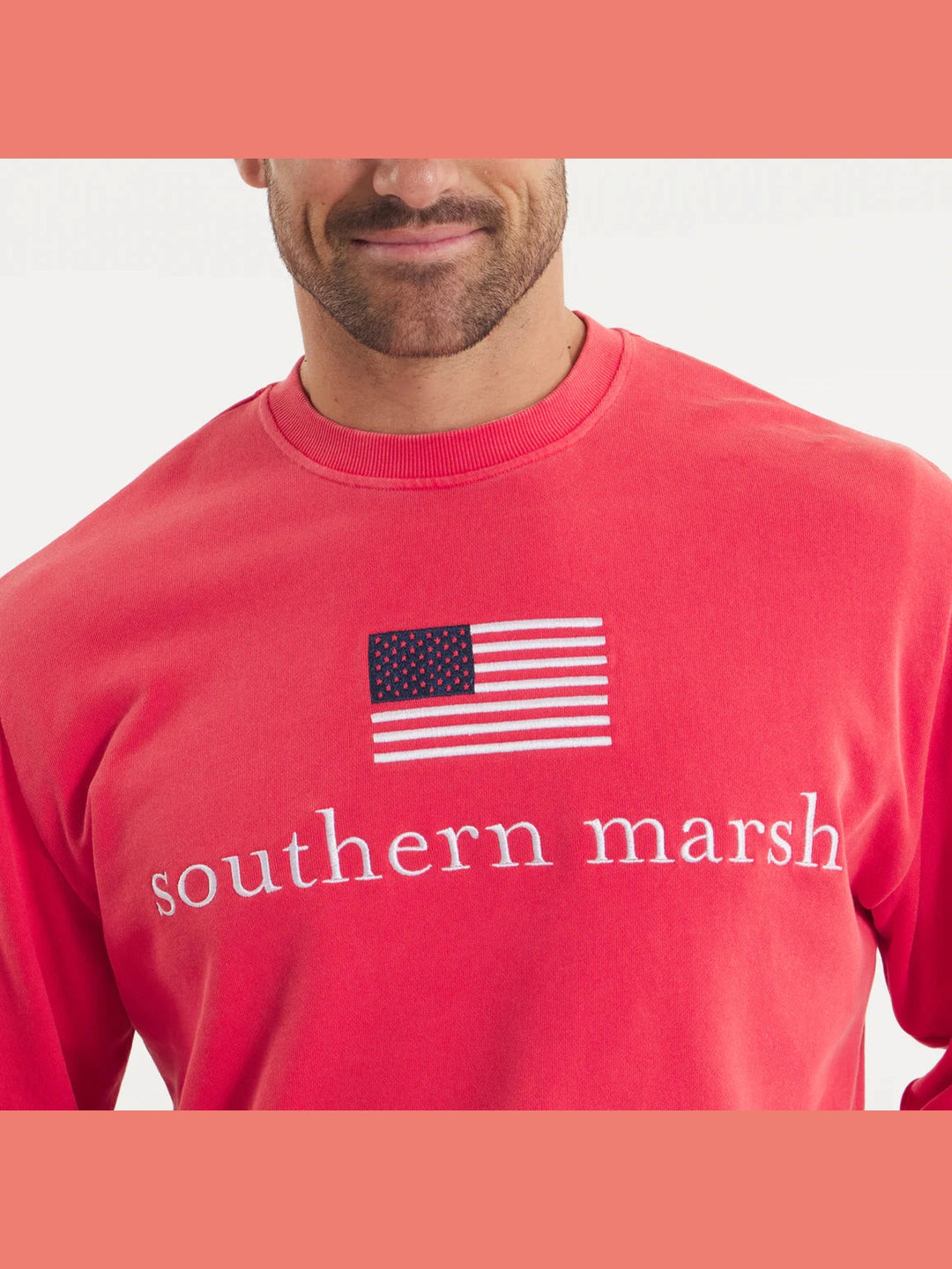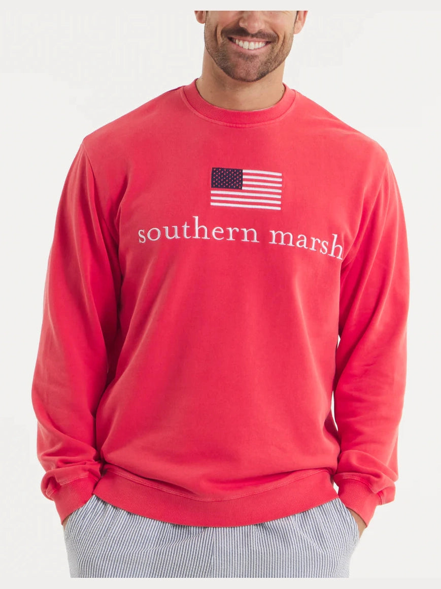 Southern Marsh SEAWASH Sweatshirt - American Flag - Washed Red