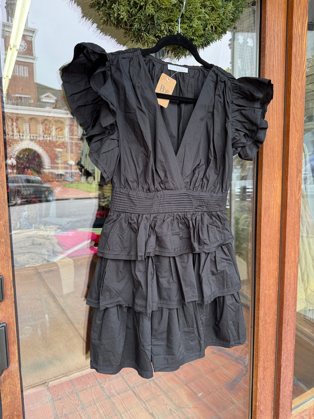 Karlie Solid Black Wrap Ruffle Dress- Black