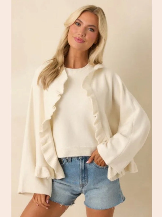 Prosperina Sabrina Ruffle Cardigan - Ivory